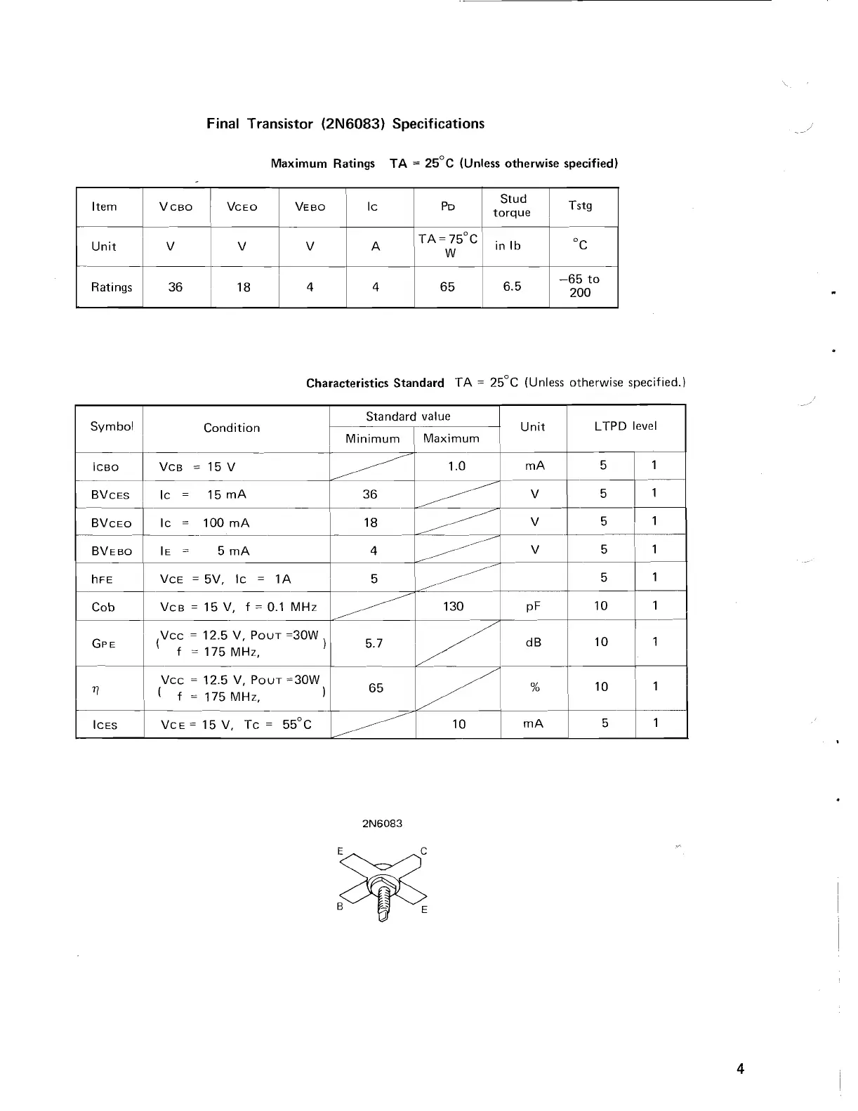 Kenwood TR-7400A - FINAL TRANSISTOR SPECIFICATIONS