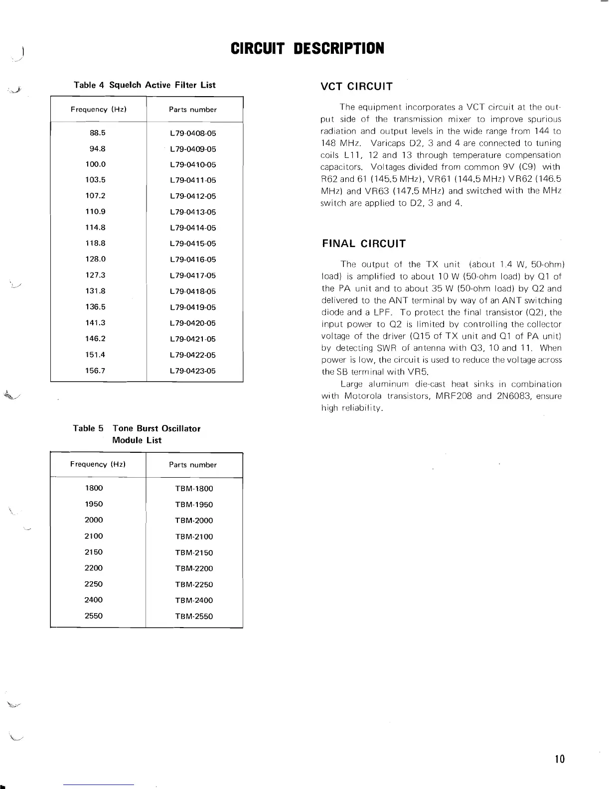 The equipment incorporates a VCT circuit at the out-