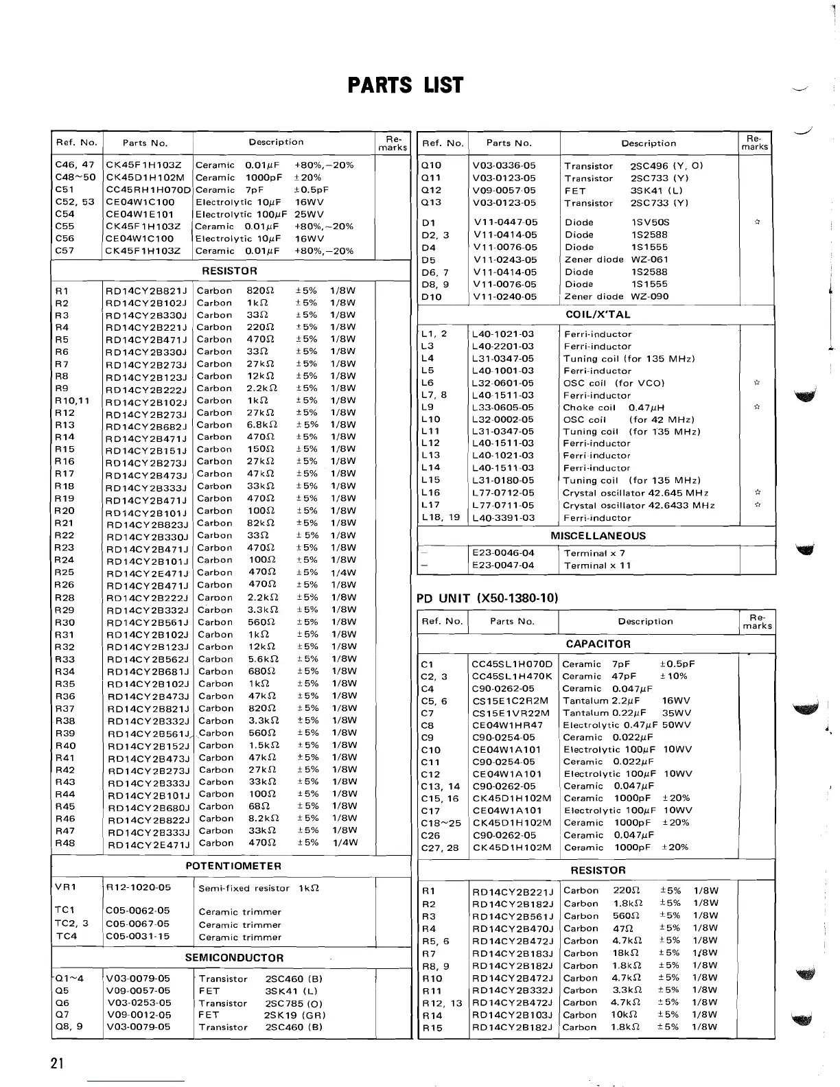 PARTS LIST