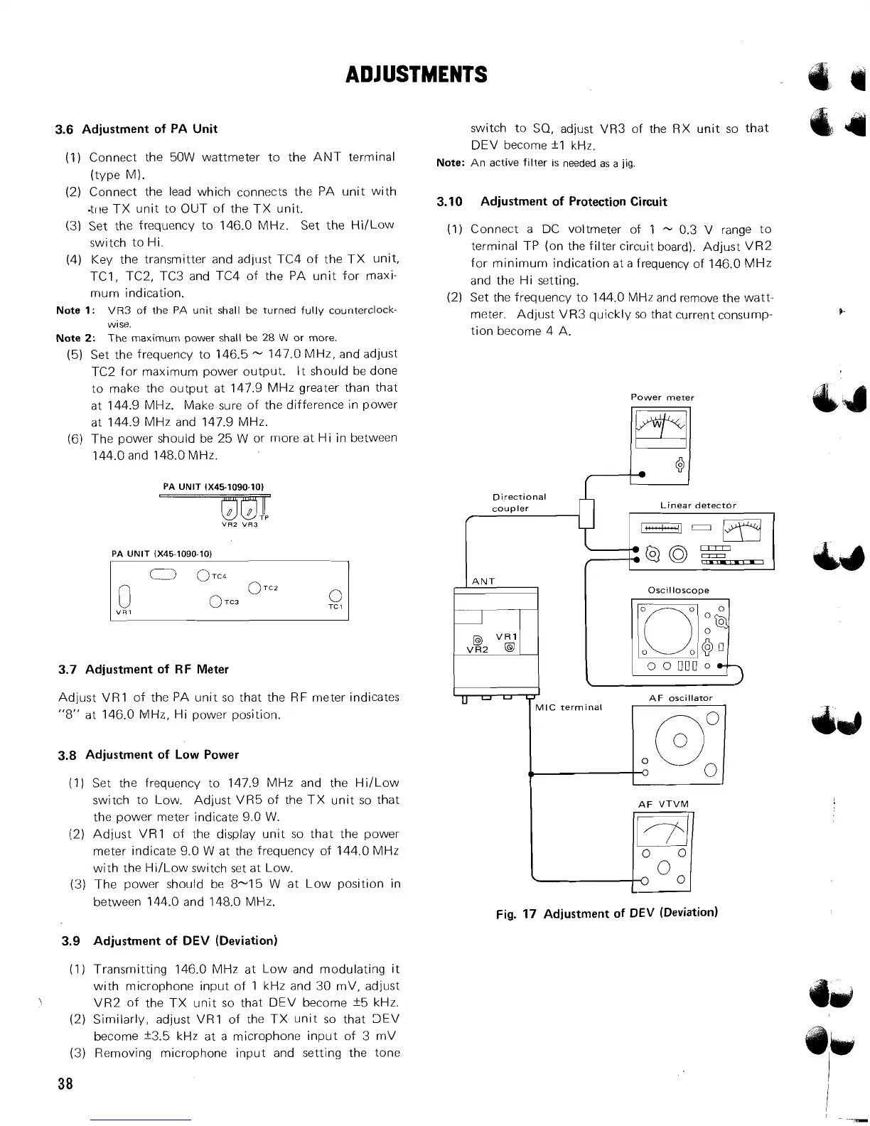 Adjust VR1 of the PA unit so that the RF meter indicates
