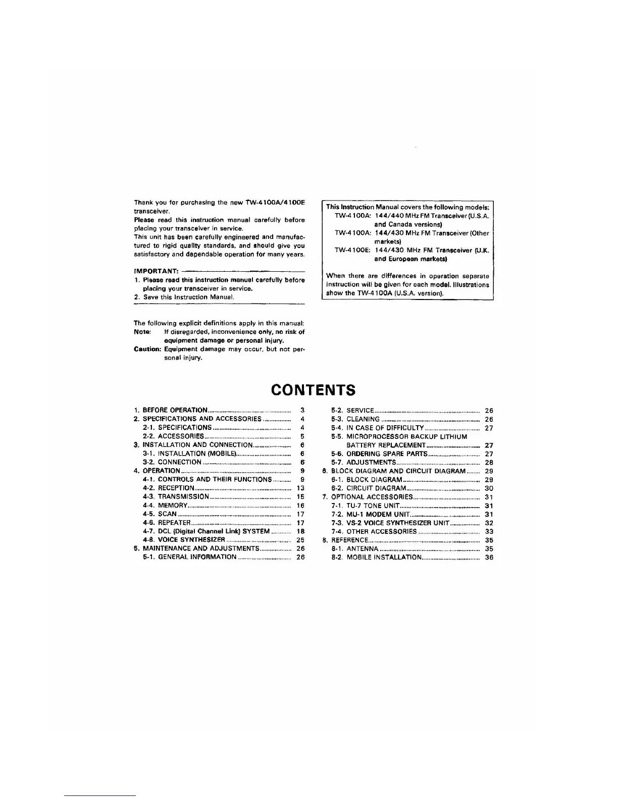 Kenwood TW-4100A - Contents