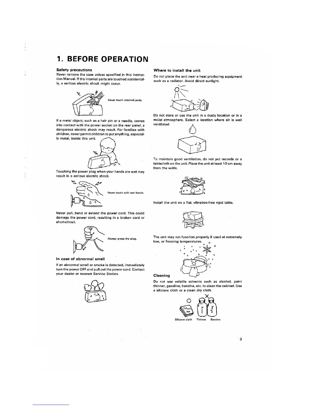 Kenwood TW-4100A - BEFORE OPERATION; General Safety Precautions; Installation Location Guidelines; Cleaning Instructions