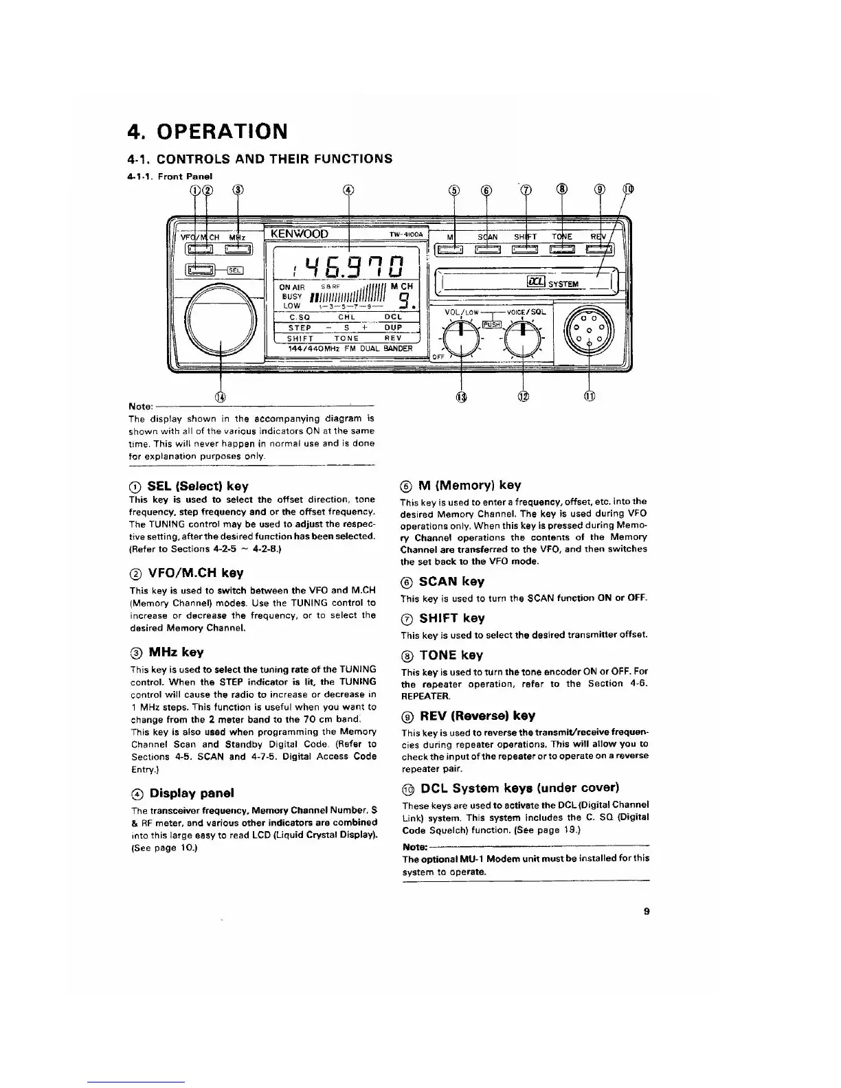 Kenwood TW-4100E - 4. OPERATION; Front Panel Controls and Display