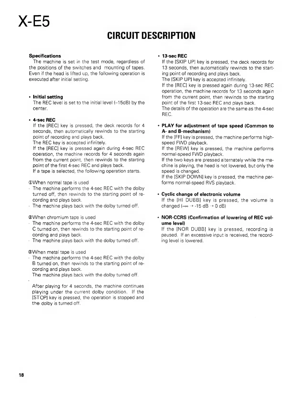 Kenwood X-E5 - REC Operations, Tape Speed, and Level Adjustments