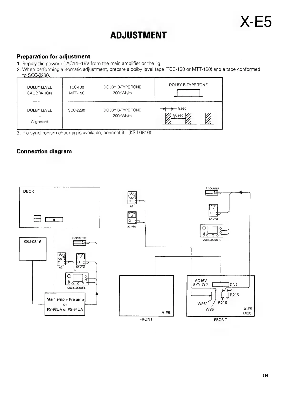 Kenwood X-E5 - Adjustment Procedures; Preparation, Connection Diagrams, and CD Player Adjustment