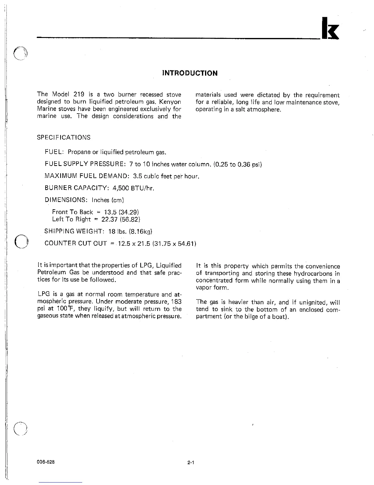 Kenyon 219 - Introduction; Specifications