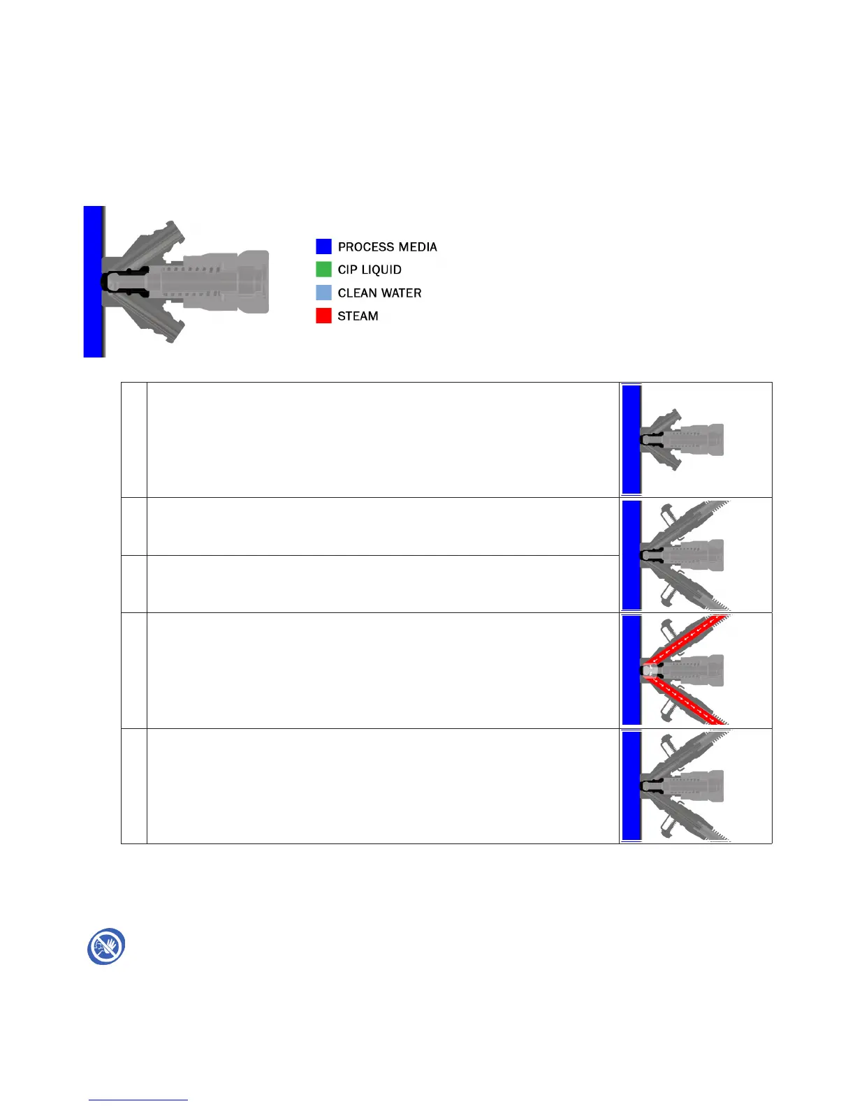 Steam sterilisation takes place with the valve remaining in its closed position. Perform the following