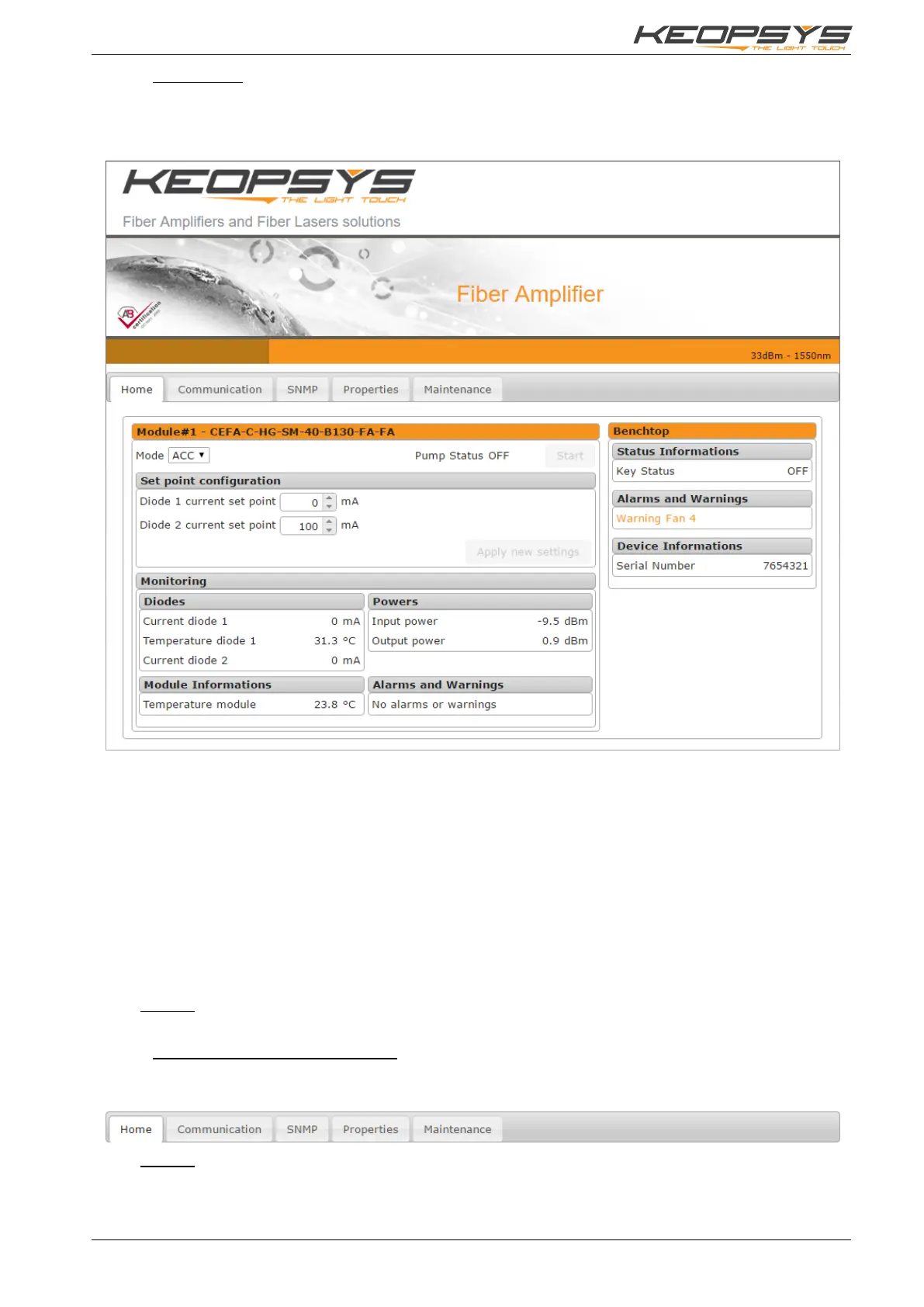 Lastly, you have access to several information: diodes current, temperatures, optical power, alarms and