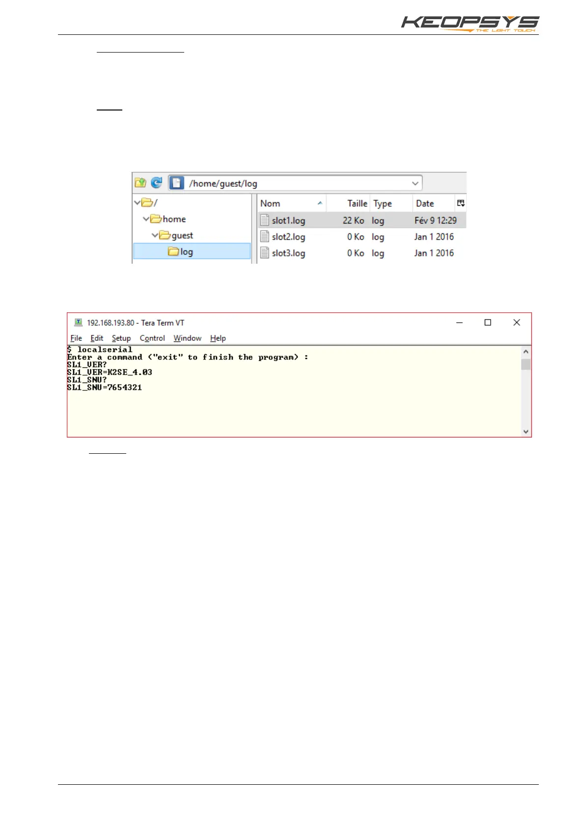 are logged, just type localserial and press Enter. Then you can use RS232 commands (see §5.2):
