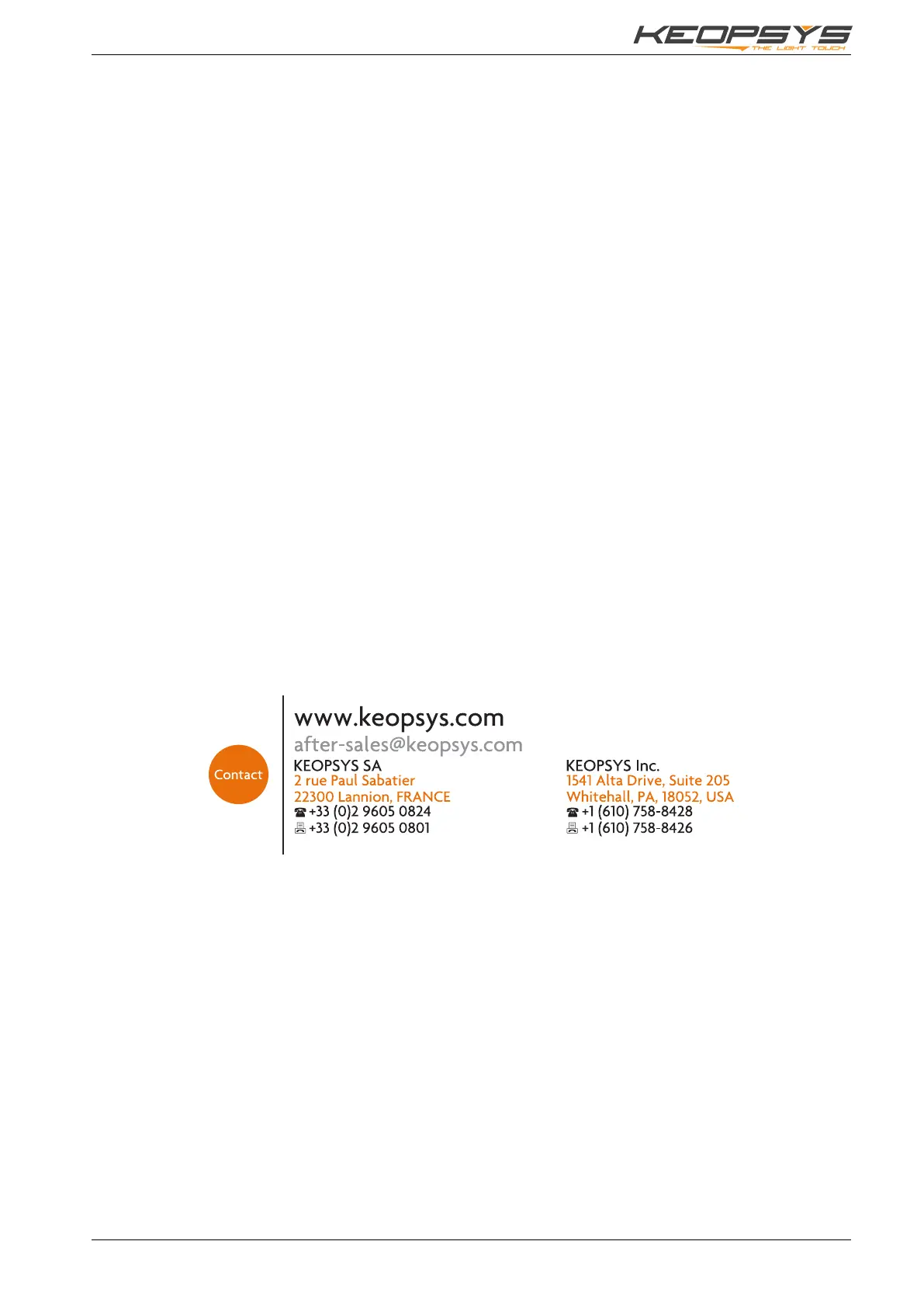 For assistance, or before any shipments, please contact Keopsys: