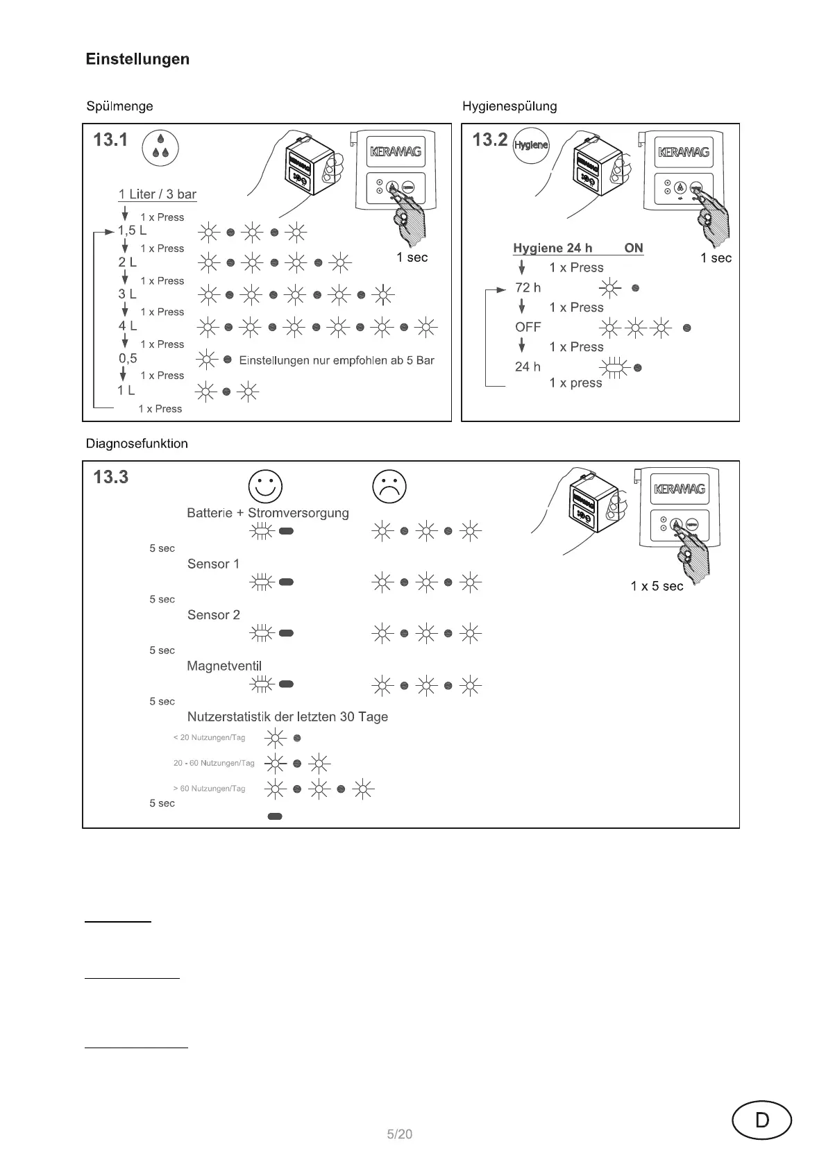 Einstellungen: Vor Urinalmontage (Bild 9) können folgende Betriebsbedingungen verändert werden: