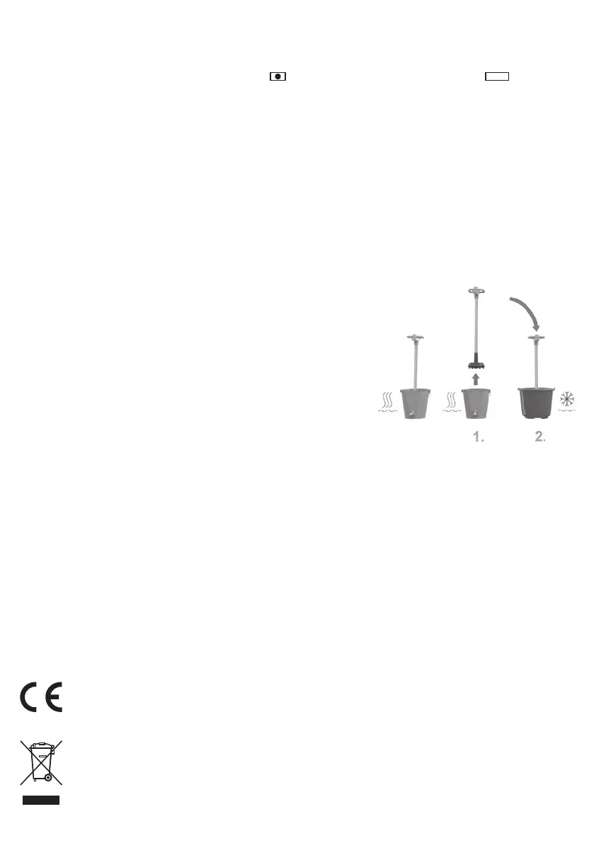 og træk stikket ud af stikdåsen. Lad kalvemælkevarmeren stå med væsken nogle minutter endnu, inden du tager