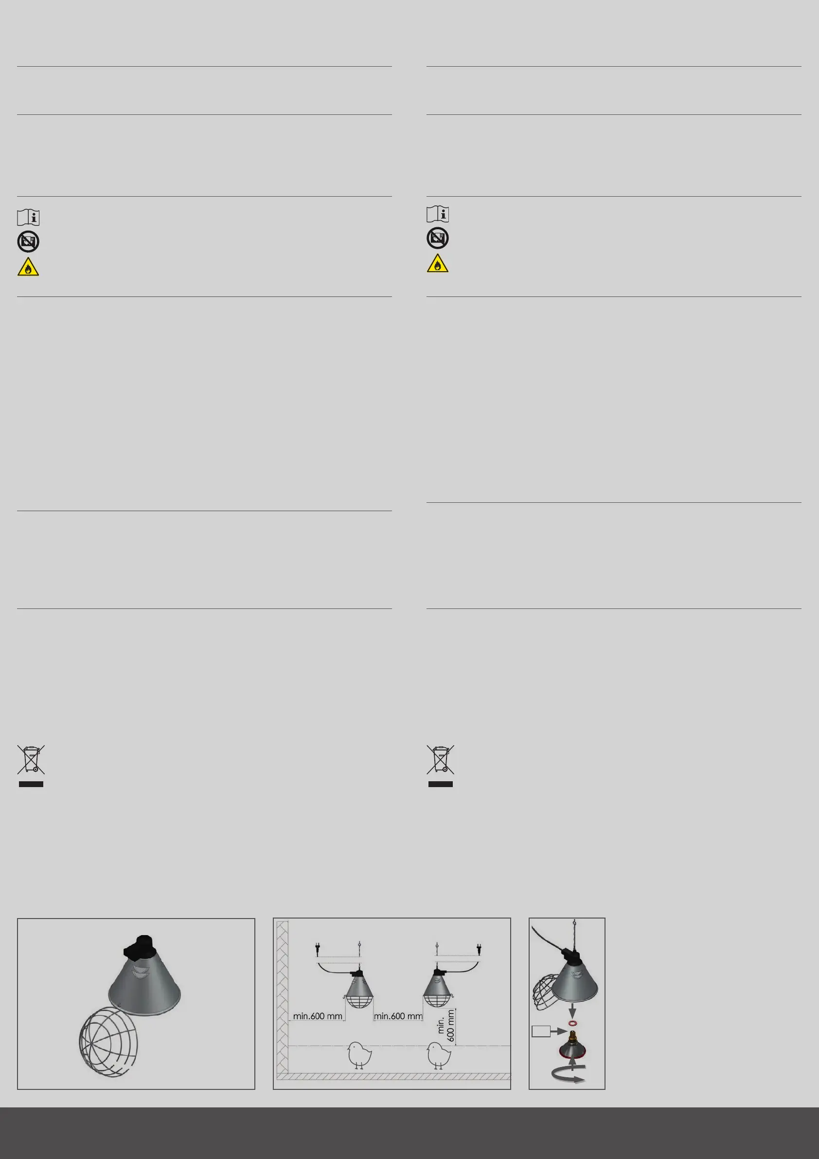 • Utiliser l’appareil exclusivement avec des radiateurs infrarouges d’un culotE27 et d’une puissance absorbée maximale de 175watts!