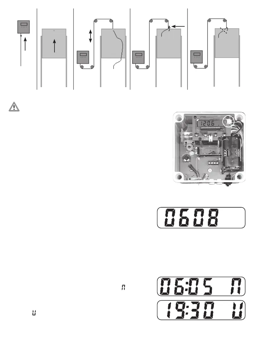 Trykk meny-tasten i ca. 3 sekunder for innstilling av tidene. Innstillingen for åpningsklok-