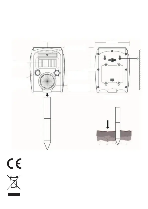 Power supply: Solar panel with 3 rechargeable type AA batteries.