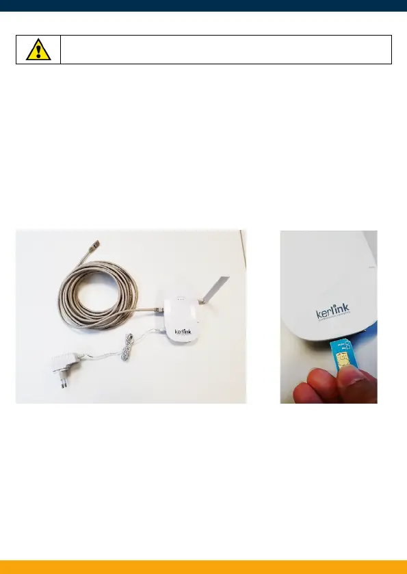 Ethernet cable, power supply and LoRa antenna connecons USIM card inserted