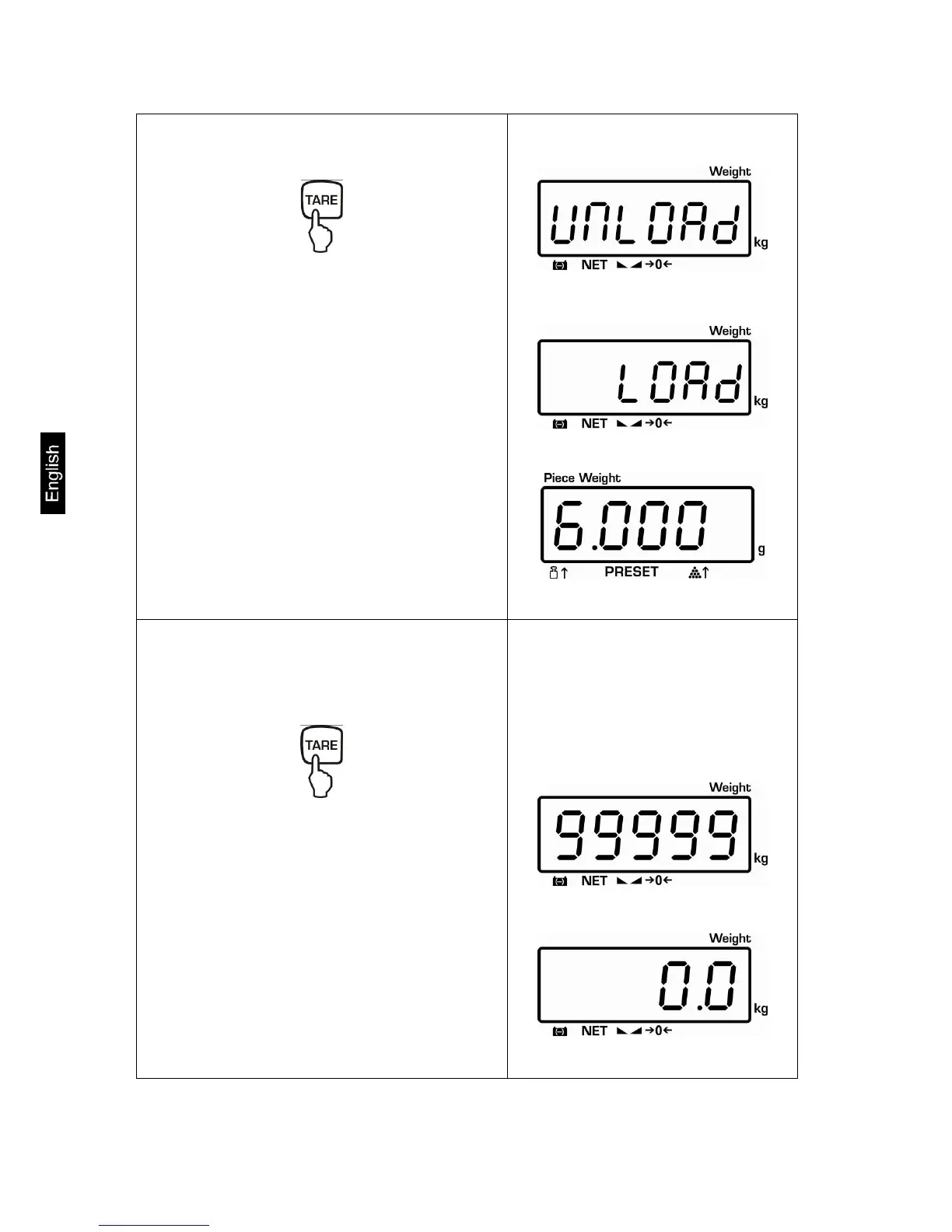 TARE button, „UnLoAD“ appears