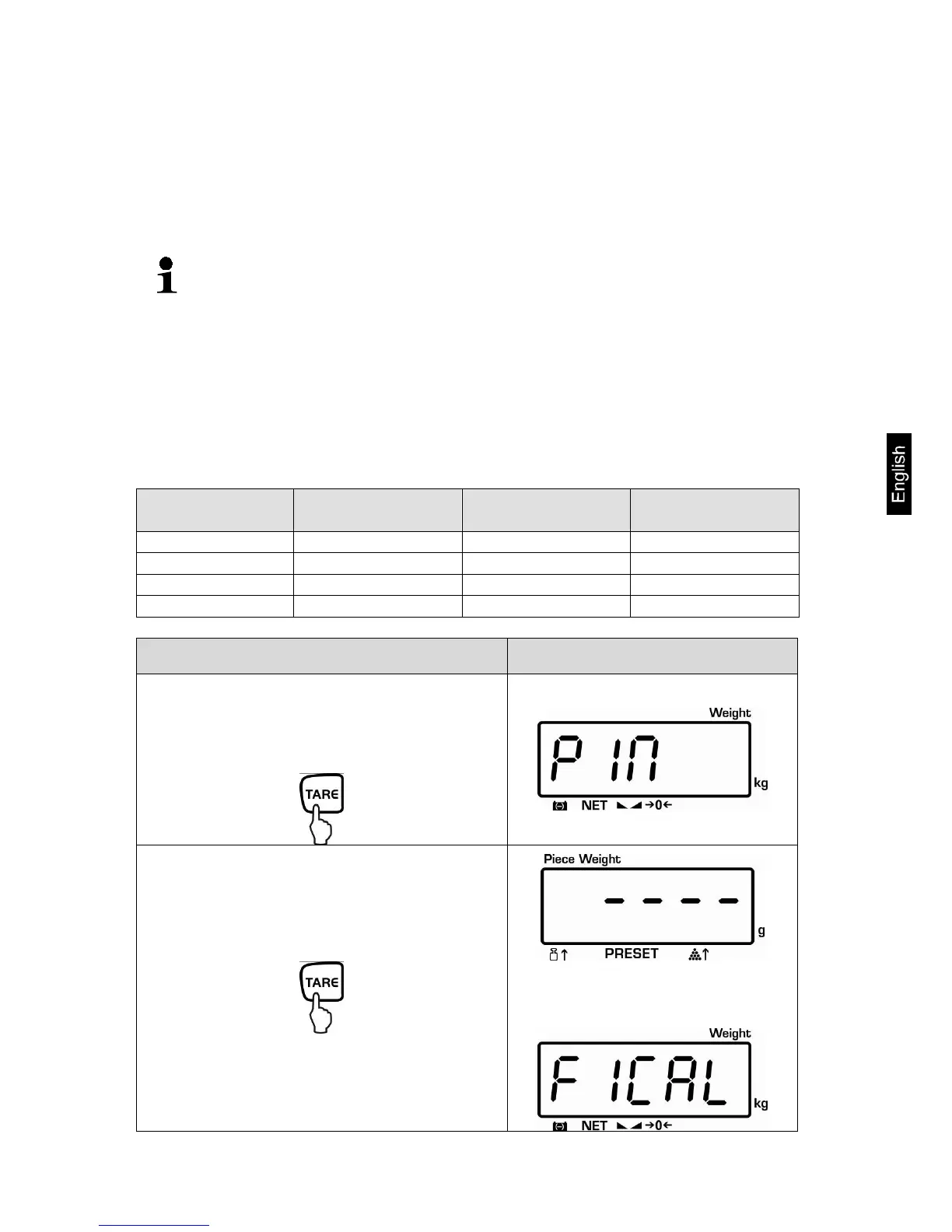 • The test weights to be used must be adapted to the weighing scale’s