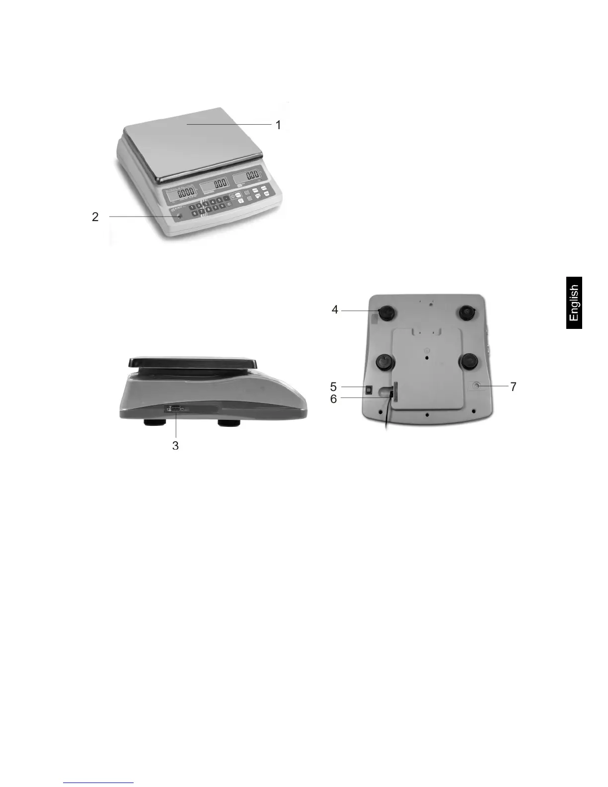 1. Weighing plate / rechargeable battery compartment
