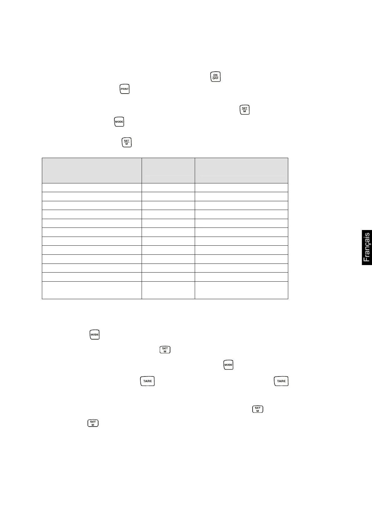 de la touche entraîne la reprise de l’unité de pesée actuelle comme „facteur