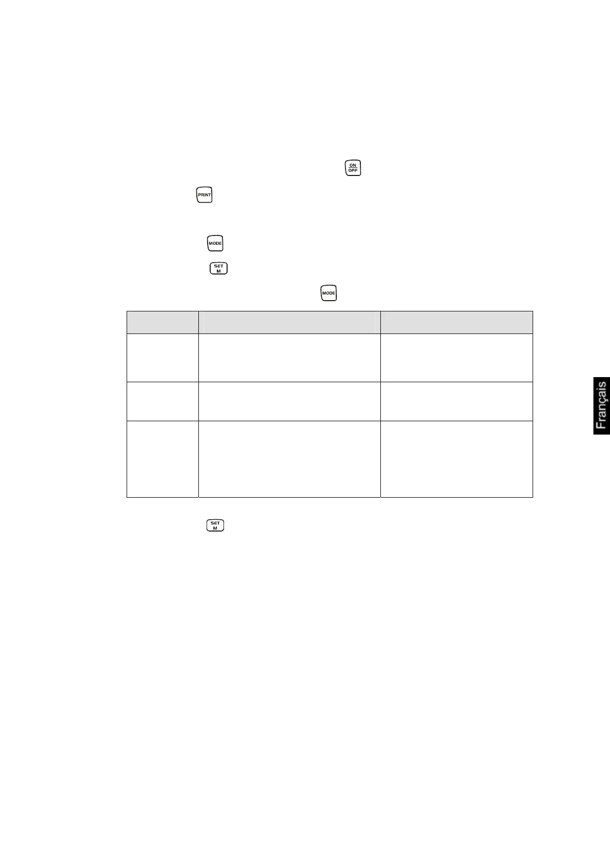 Appuyer sur la touche et la maintenir enfoncée jusqu'à ce que sur l'affichage