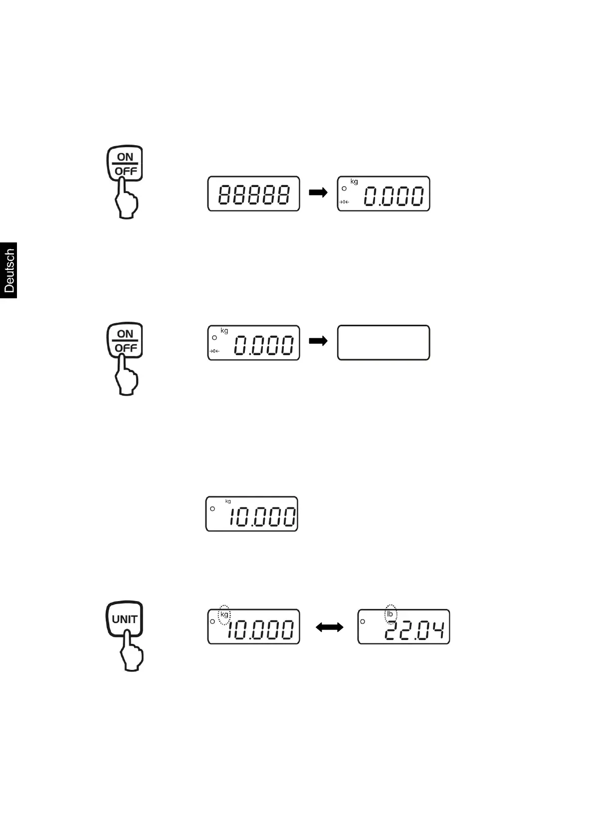 wichtsanzeige erscheint, ist die Waage wägebereit.