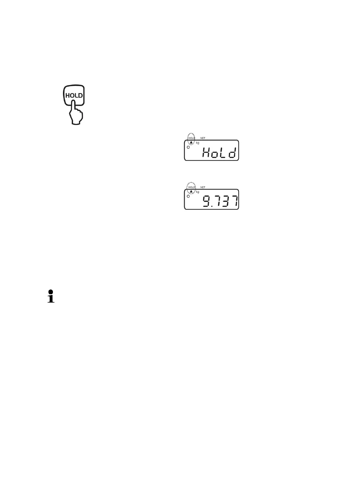 Colocar o material pesado e pressionar a tecla HOLD
