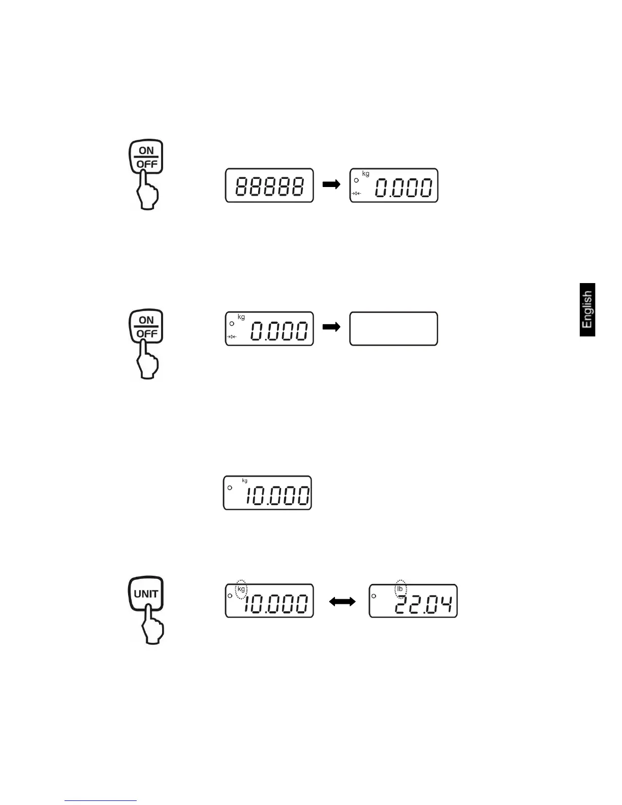 Ö By pressing the UNIT button the weighing result can be
