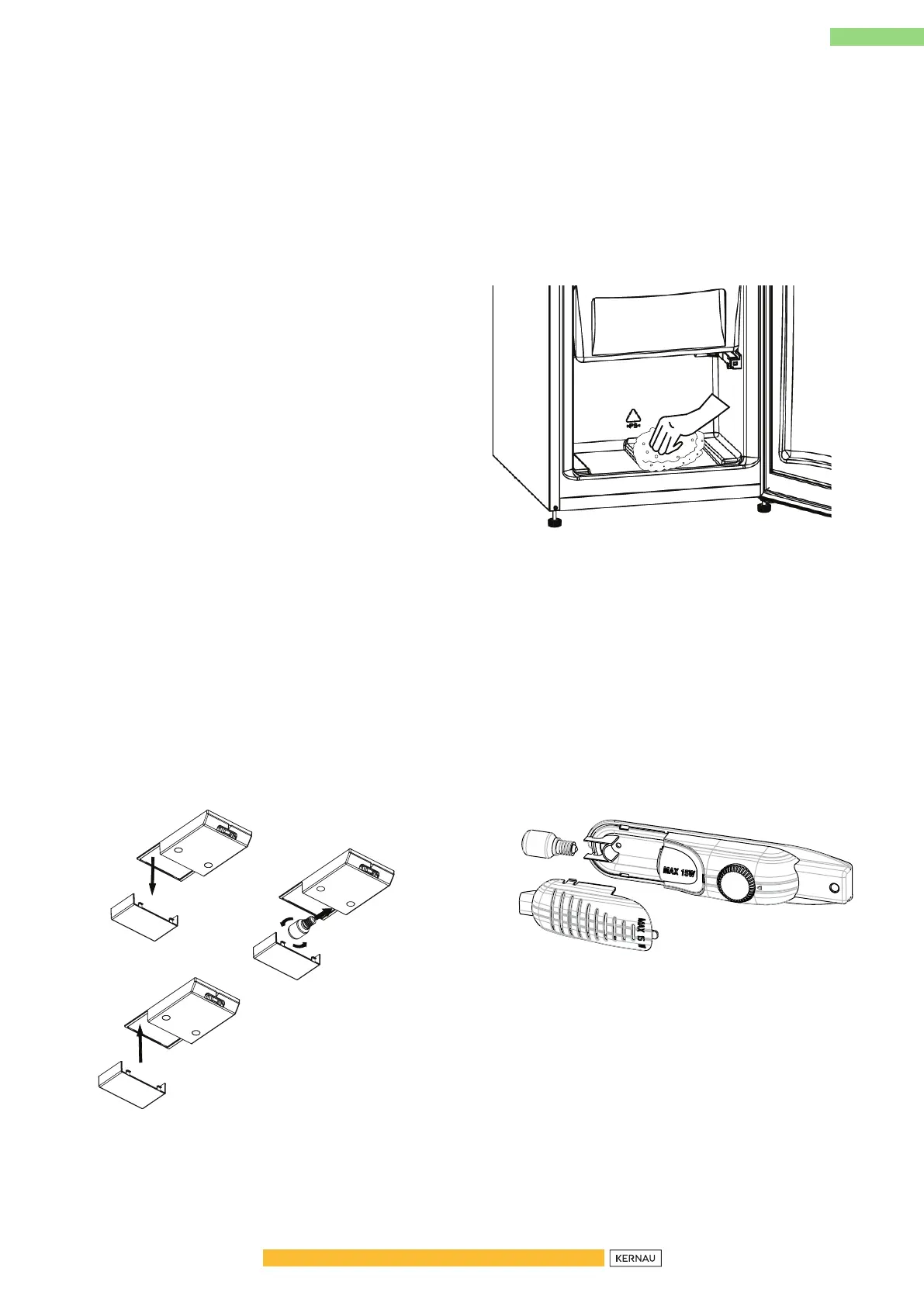 • Vysušte vnitřek mrazicího prostoru houbičkou