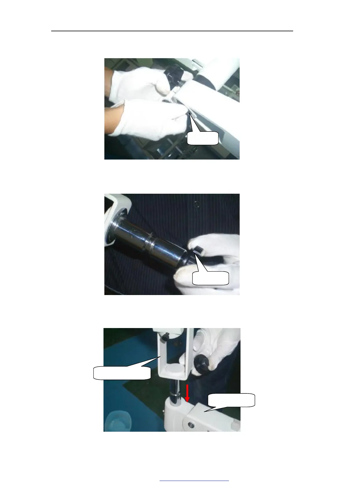 10. Remove the screw D from the bottom of eyepiece stand
