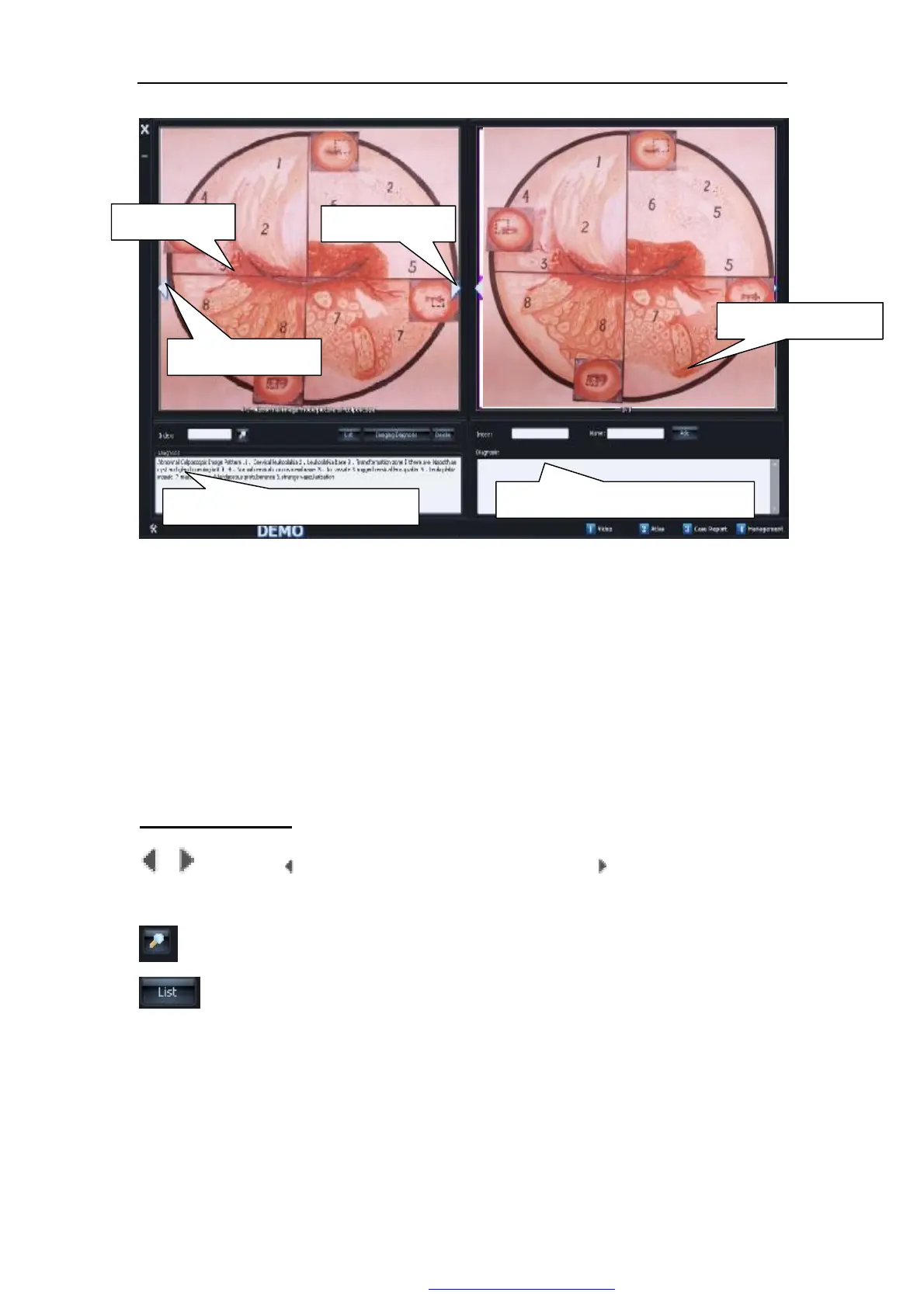 Click " "forward browsing the atlas images;click" "back browsing the altas