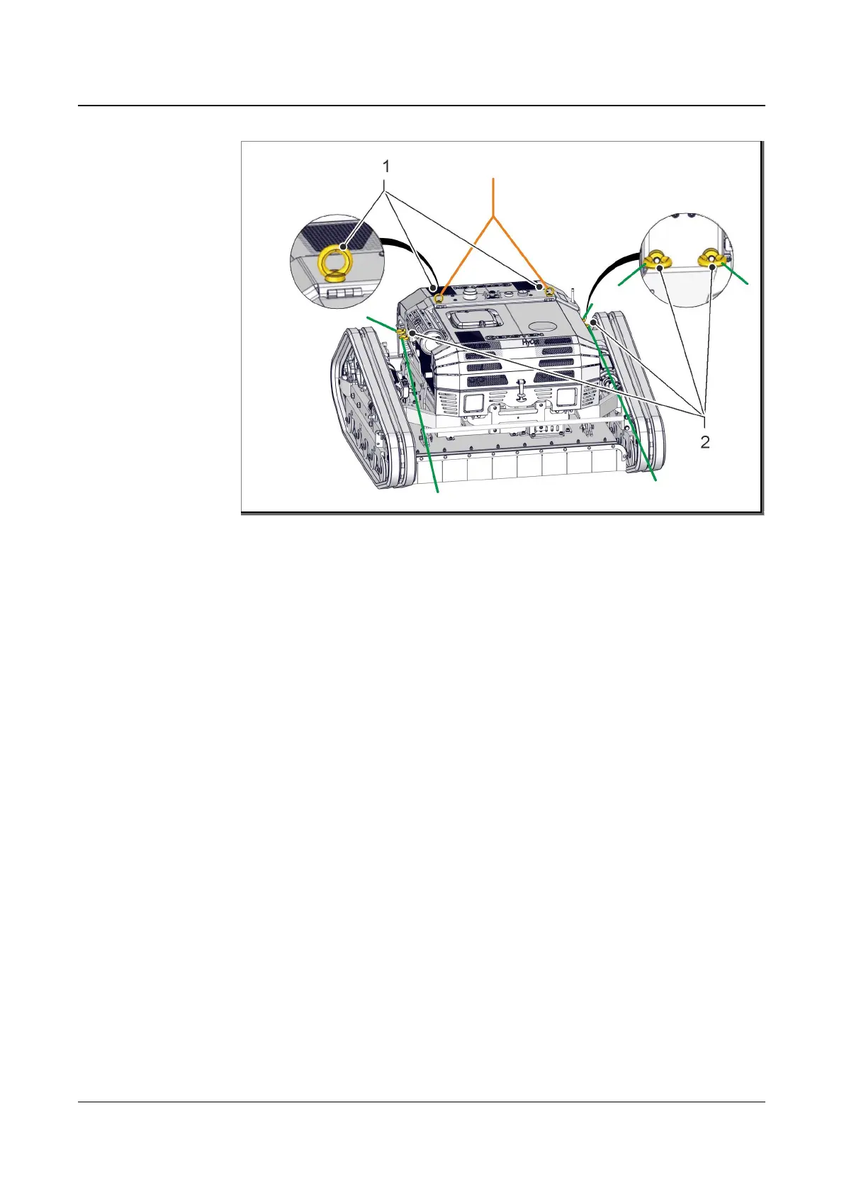 Only the existing transport lugs (1) should be used to transport / lift the machine.