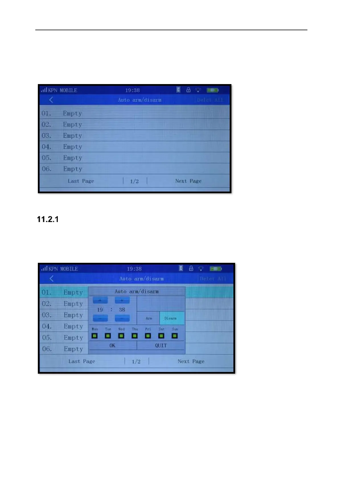 On the page of Auto Arm/Disarm, you can program the first 8 zones to automatically Arm/Disarm. The