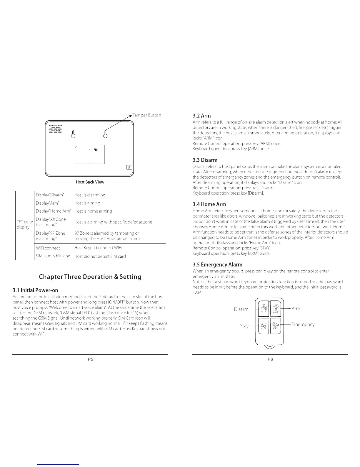 KERUI W18 - Operation and Setting; Initial Power-on; Arming the System; Disarming the System