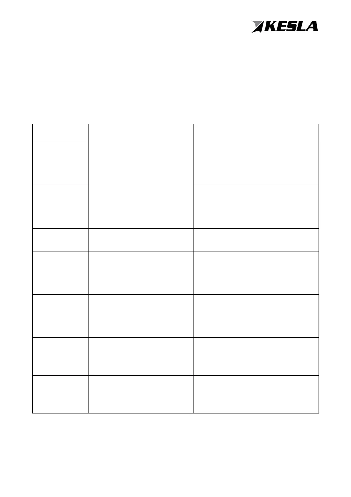 The operational failure table below shows the possible most common faults, their causes, and the
