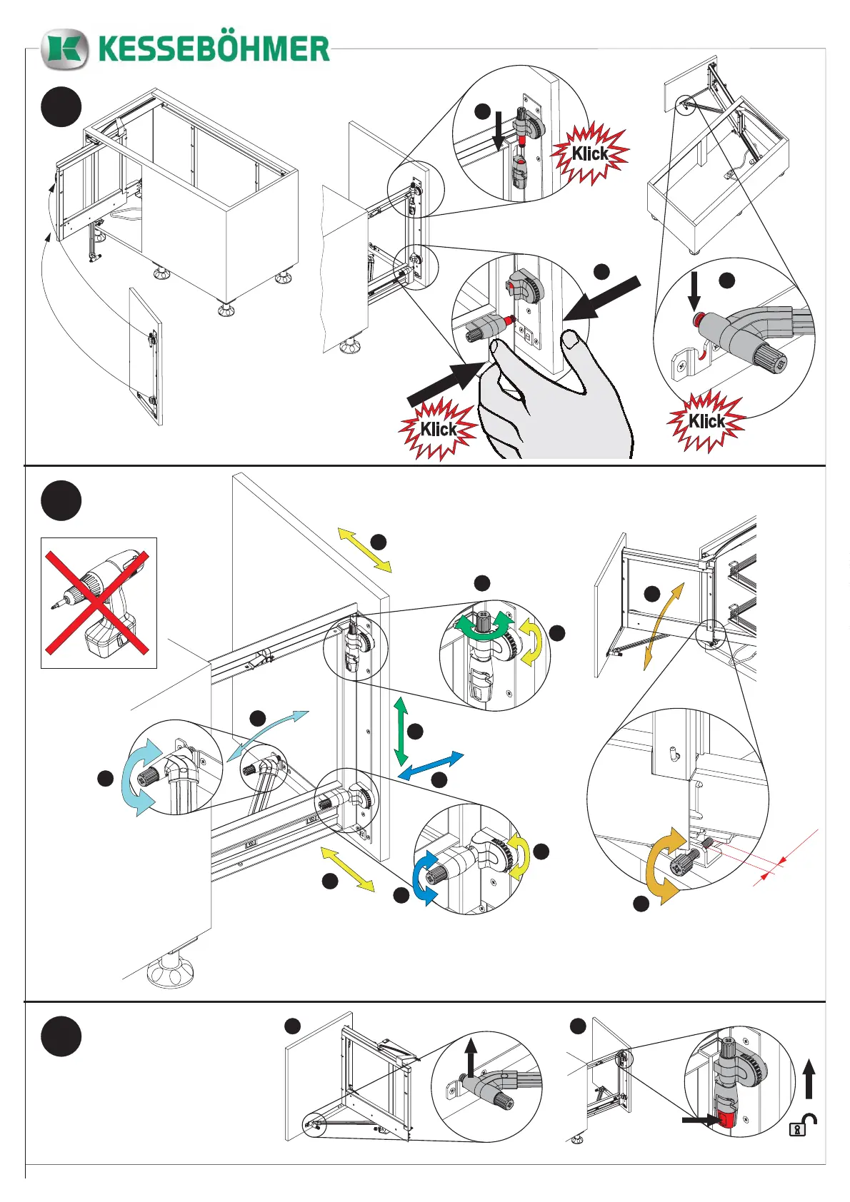 Kesseböhmer Magic corner - Final Assembly and Adjustments; Front Panel Dismounting;Mounting