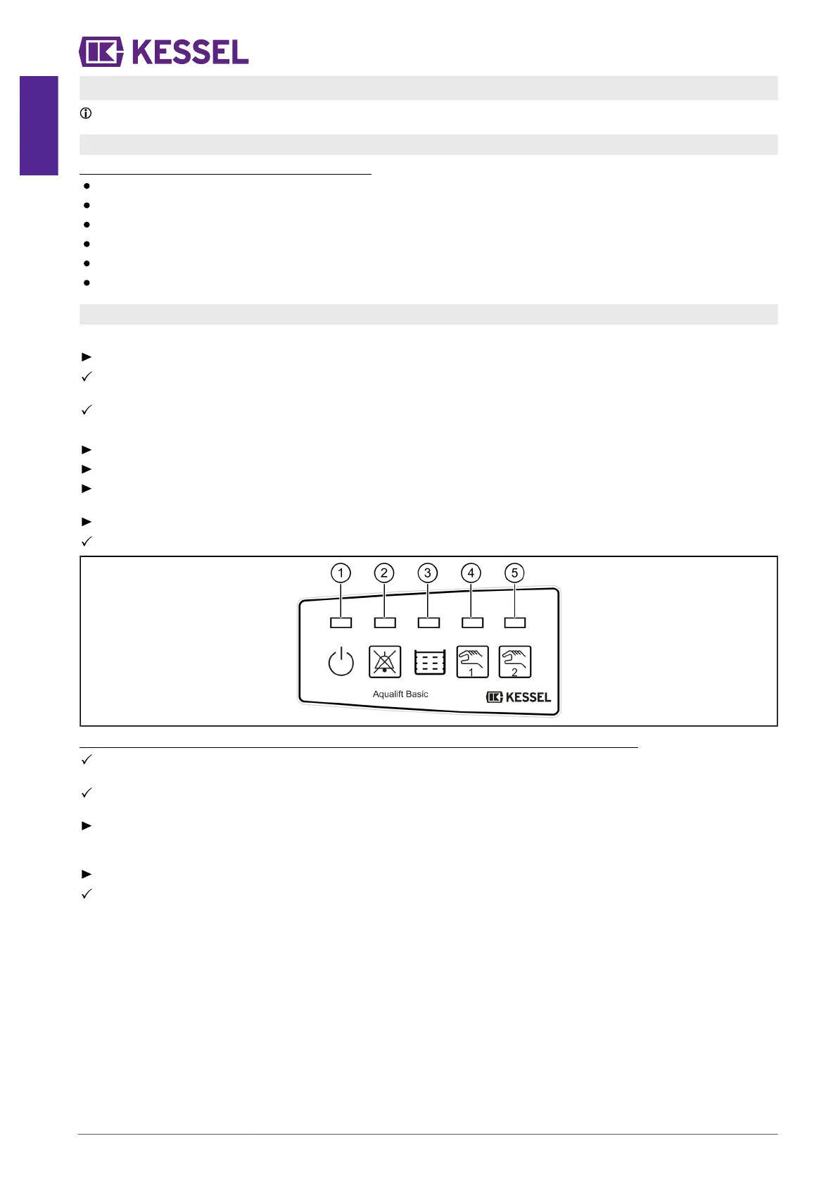 (Niveau (3) und Pumpenbetrieb (4) / (5)) leuchten, bis der Anlagenbehälter durch die Abwasserpumpe entleert wurde.