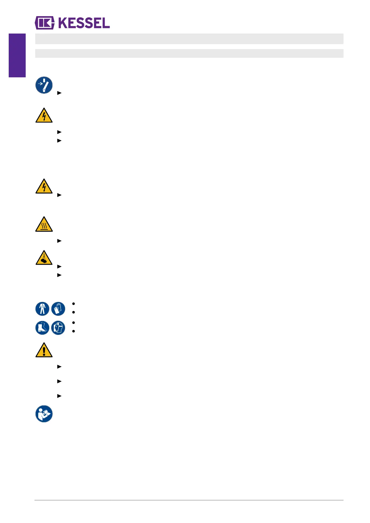 Bei Einbau, Wartung und Entsorgung an der Anlage stets Schutzausrüstung verwenden.