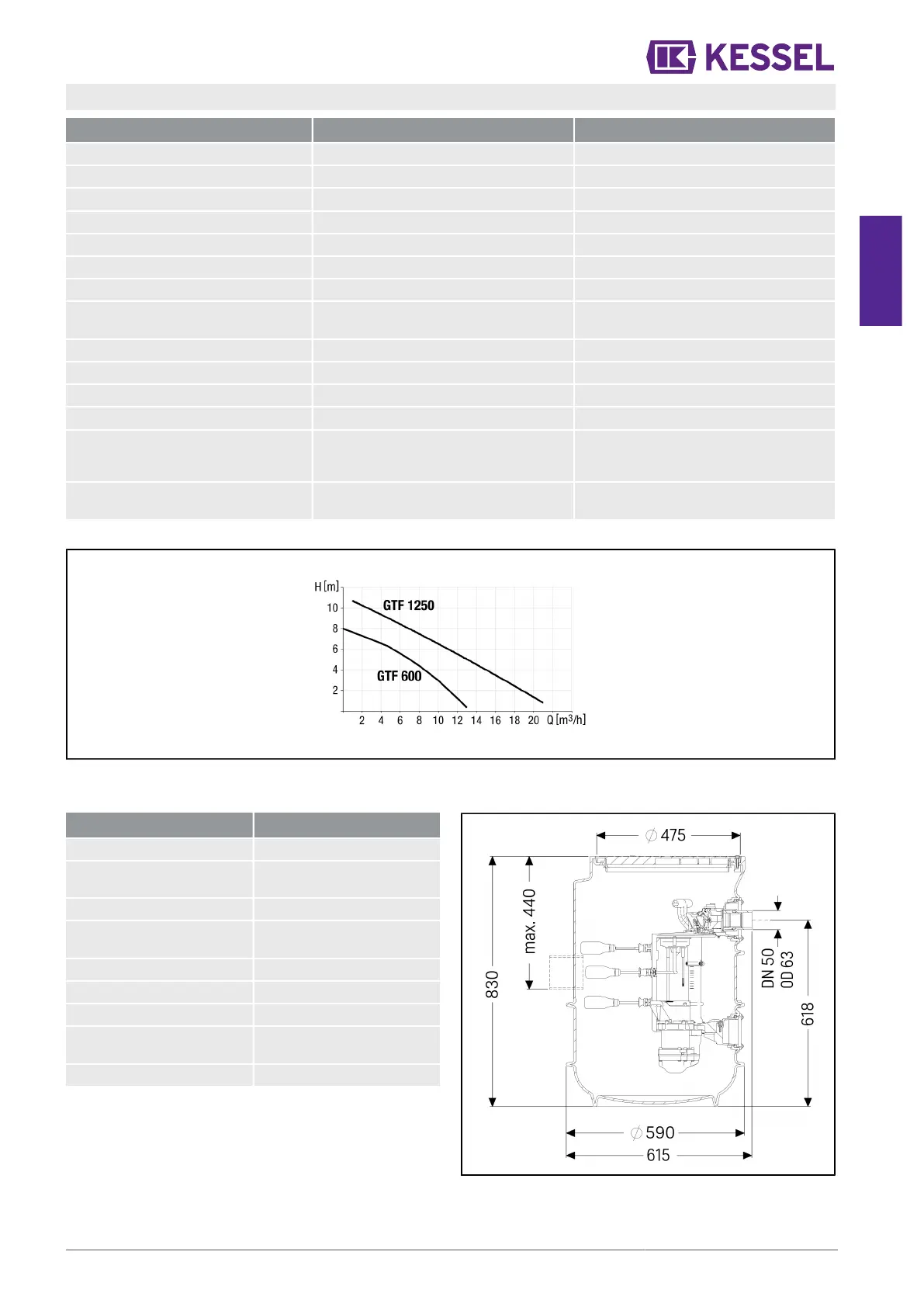 Indication / type de pompe GTF 600 GTF 1250