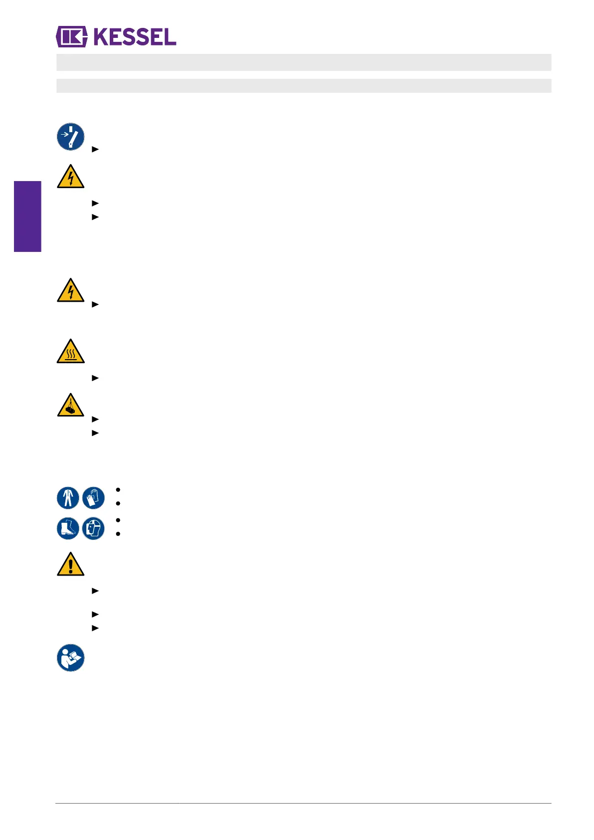 Per tutti i lavori elettrici sull’impianto trovano applicazione le norme di sicurezza nazionali.