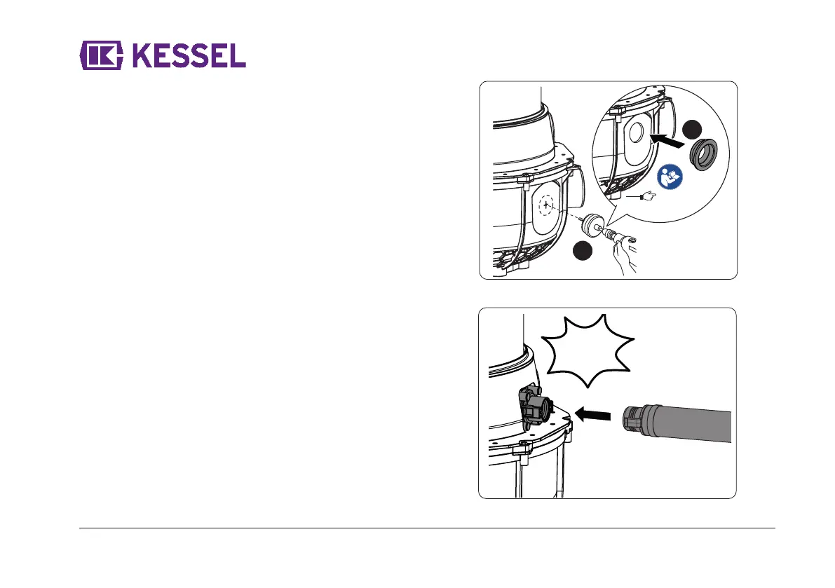 ✓ Stutzen rastet deutlich hörbar ein.