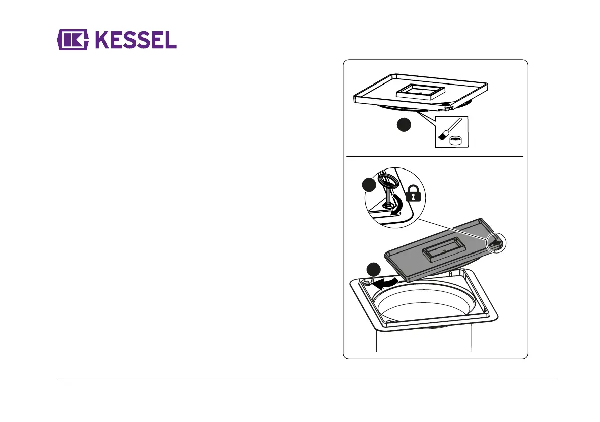 Abdeckplatte durch Rechtsdrehung des Schlüssels verriegeln. ➌