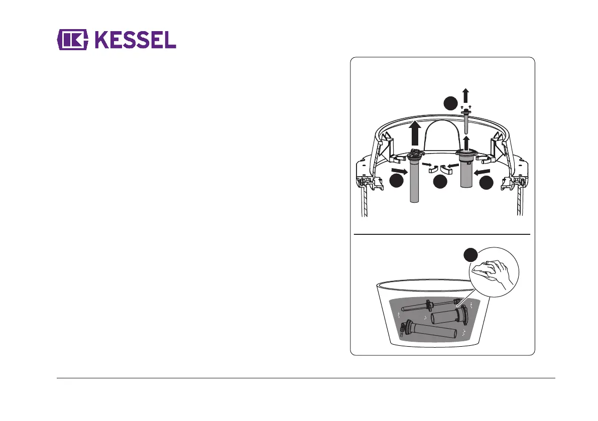 Alarmsonde und Niveauerfassung aus den Halterungen herausnehmen.