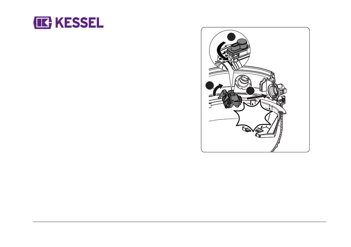 Clip on flap housing. ➊ (Ensure that both clips latch into the locking