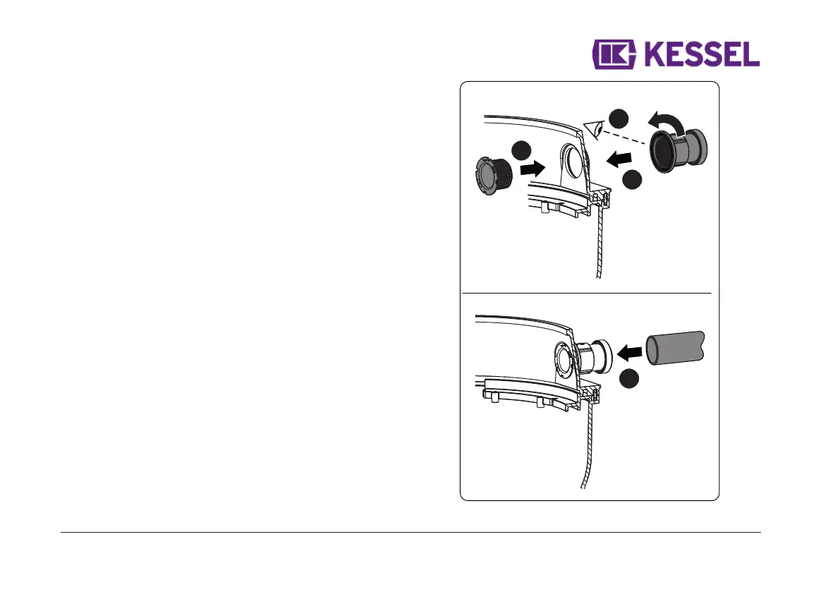 Screw the mating part on hand-tight such that it is securely sealed. ➌