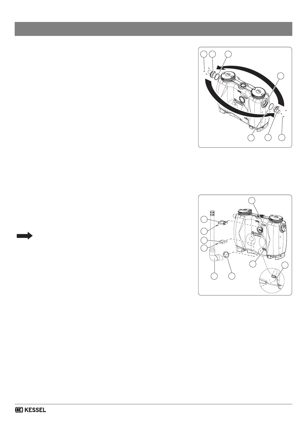 • Push the direct disposal pipe <18> into the all-round seal and t on the attachment clamps <34>.