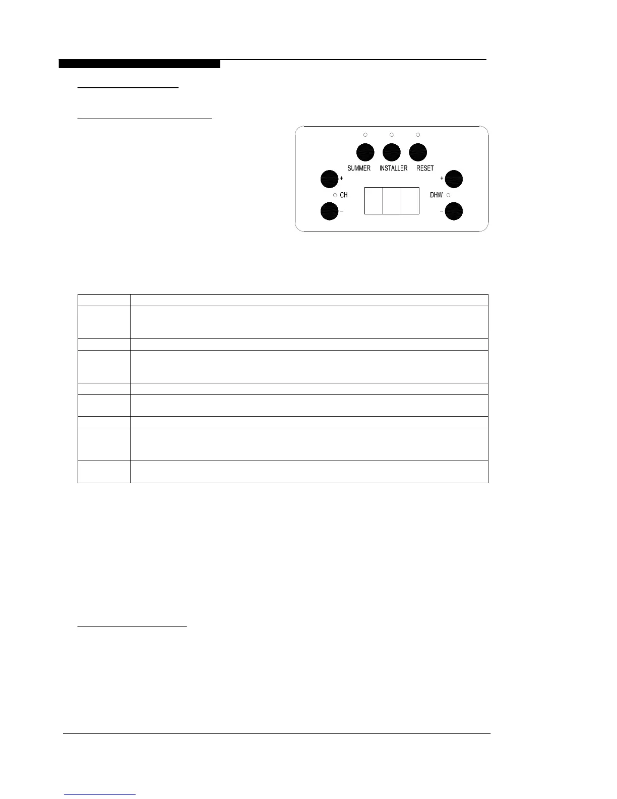 During normal operation the green lamps beside the CH +/- buttons and DHW +/- buttons indicate