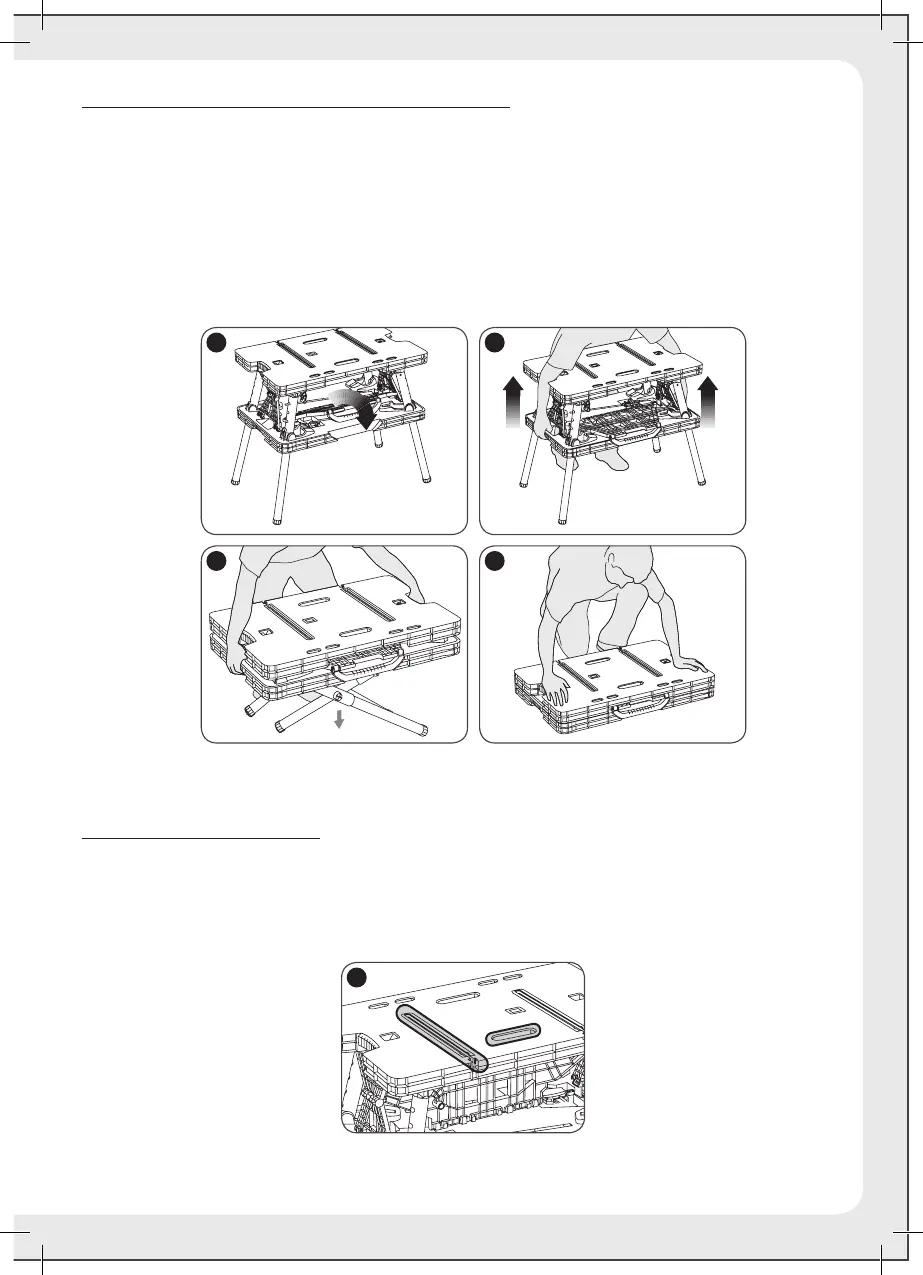 2. Reach through the openings in the table top and grasp the lower section of the bench. Pull up