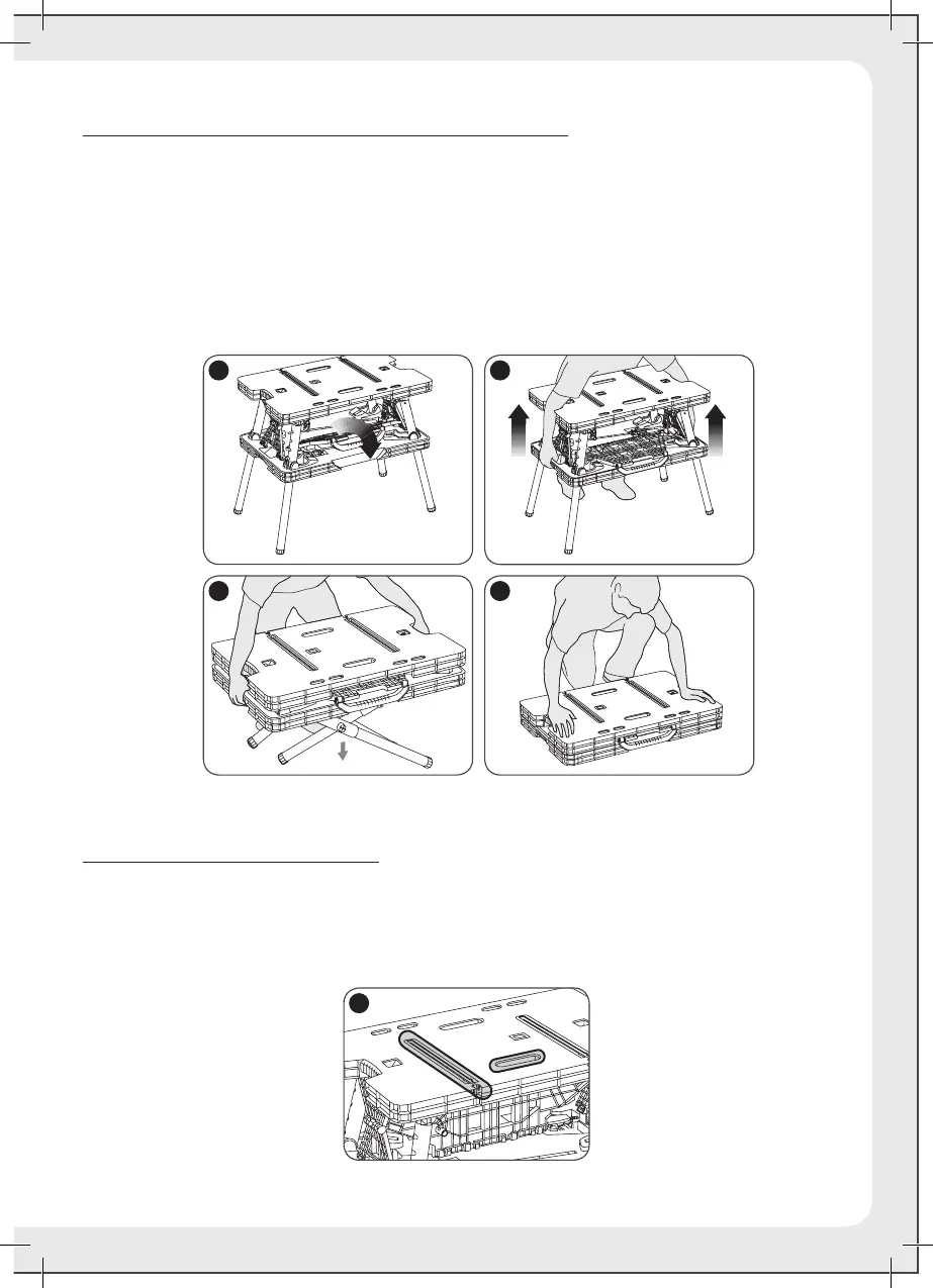 2. Saisir la section inférieure de l’établi en passant par les ouvertures du dessus de l’établi. Relever la