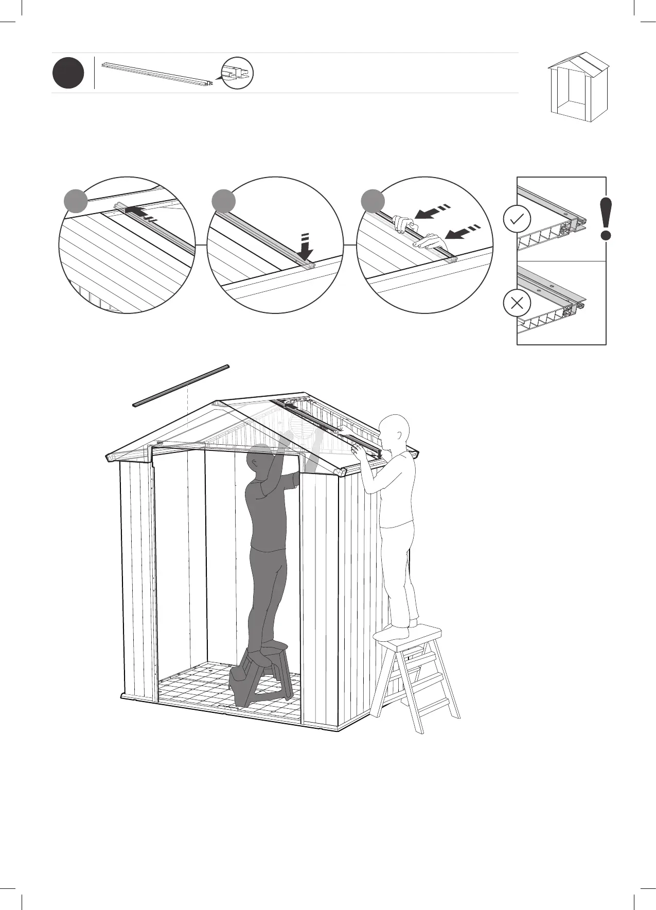 Keter DARWIN 6x4 - ROOF ASSEMBLY (cont.); Step 36: Attach roof support beams